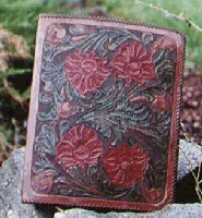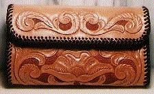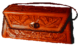 The possibilities offered to a leatherworker are almost endless. Here is a very small listing of the many kinds of item I make with leather. Of course, this is only a small fraction of the thousands of things that can be made with leather, from the smallest coin purse, to the biggest leather jacket or Saddle. The items listed here are the kind usually made with tooling leather, but there are so many different kinds of things that can be made with so many different kinds of leather, that I could not presume to even begin trying to list them all. If you are learning about leather items in general, be sure to go to Leather Links on the IILG page and visit some of the other many web pages devoted to leather craft.