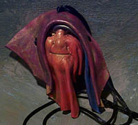 This miniature mask is by an artist I found at some of the art and craft fairs in the Pacific Northwest. They make full size masks as well, of course. Beautiful stuff, all of it. Alas, I could only afford the little one. So, here it is. ;-) It even has little mask ties on the sides. ^_^