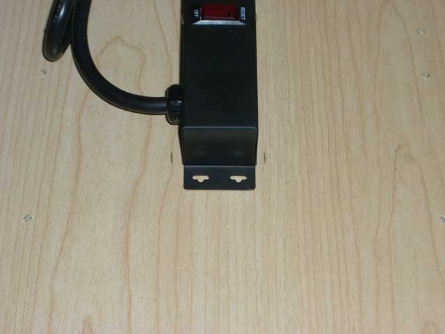- Mark where the mounting holes for the power strip are so that you can make sure things don't go out of whack when you start screwing it on.