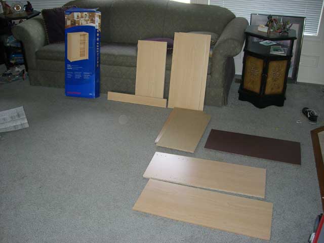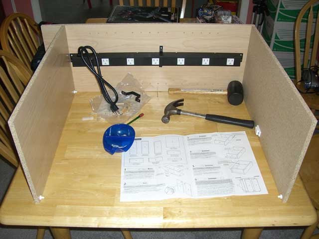 - Following the instructions for your cabinet, carefully assemble it. Remember, the side with the power strip attached will be off balance and harder to hold in place. Getting a friend to help is a good idea, or a few dead trees you have laying around the house. Dictionary and Encyclopedia Dead Trees are good choices.
