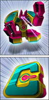 Abilities: C-Bot's rocket fists and laser eye-beams are unparalleled amongst the galaxy's transforming letters. His claws can exert enough force to puncture the exoskeleton of an ant, and his searing ocular rays an ignite nearly 20 ants per minute. If C-Bot ever found reason to quarrel with the ant world, there would assuredly be trouble. It is only by the grace of whatever deity is responsible for ant well-being that such a fate has not befallen their ranks. Also, C-Bot can fly, though not very high or far or well.