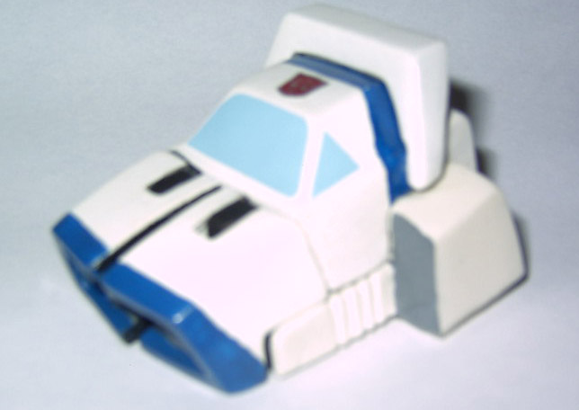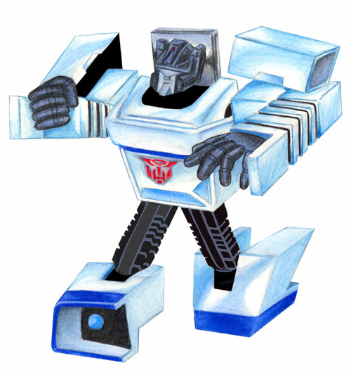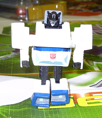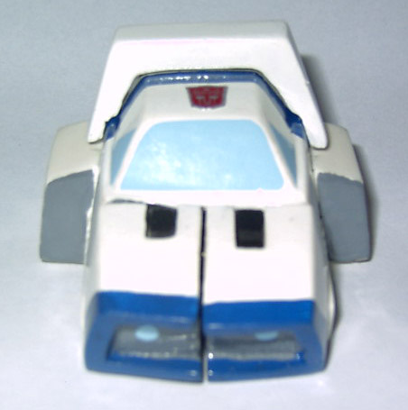 Abilities: In robot mode, Jazz' weapon of choice is his photon rifle, which he wields with amazing accuracy. He also has an overhead flamethrower he can use, but rarely does so as he feels it's not nearly as "civilized" as his rifle. Jazz also possesses a full-spectrum beacon in his front grill and a high-powered speaker system which he uses to create disorienting sound and lights shows to confuse his enemies. He also makes occasional use of a rocket-powered skateboard that doubles as destabilizer cannon. In vehicle form, Jazz can reach incredible speeds, second only to Blurr. He can use his beacon and speakers in this form as well.