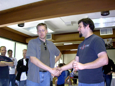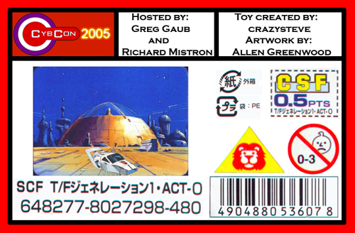 CybCon 2005 was a lot of fun and better, in my opinion, than the previous two years. With the help of the surveys the attendees and dealers turned in to us, we'll be able to have an even better show next year. Thanks to Allen Greenwood and Jackpot for their wonderful artwork used on the Jazz and C-Bot toys respectively, Joe who provided us with the C-Bots, crazysteve for painstakingly crafting the Jazz toys, Fred's Workshop for his support and the Stormsword toys, Landcross for videotaping the event, Zeatha for once again manning the front gates, and Greg for putting up with all of us and hosting a great show. Thanks also go out to everyone who came this year. We hope you all had as much fun as we did and hope to see you again next year.