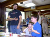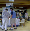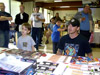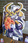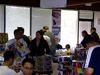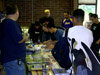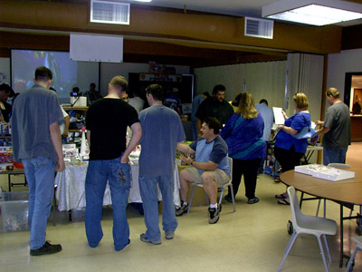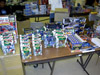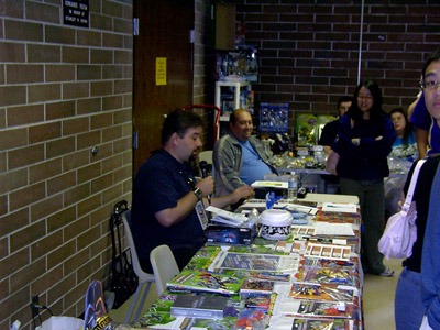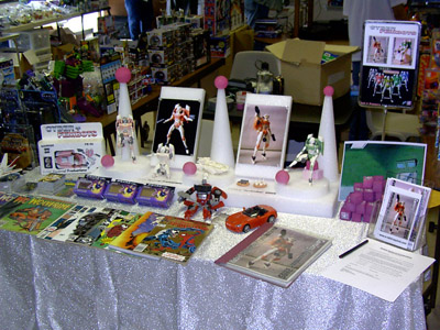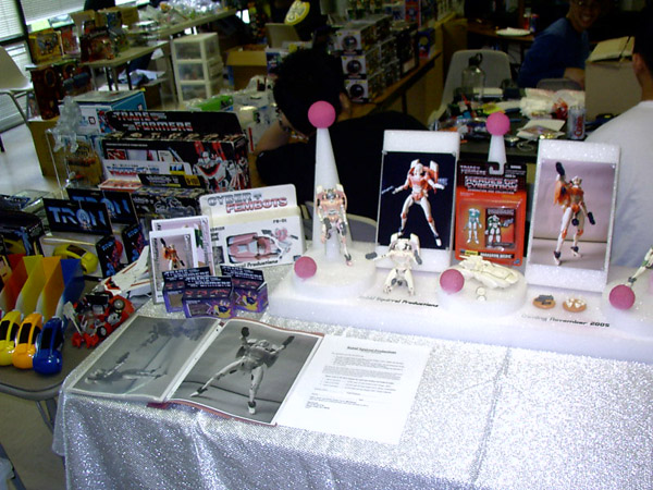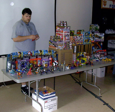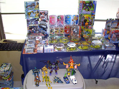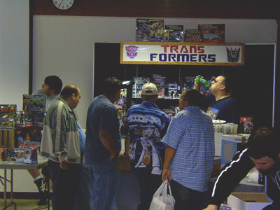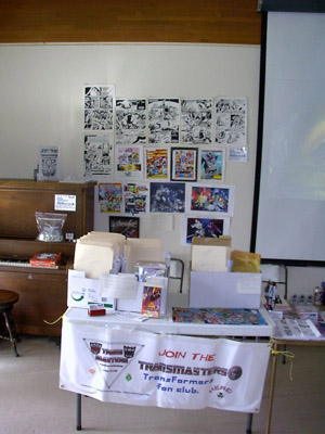 Soon, ten o'clock rolled around and we let the masses into the room. My wife, Zeatha, manned the front table handing out the SWAG bags (which contained an updated CybCon universe profile book as well as a C-Bot or later - to the dismay of at least a couple fans - Stormsword Mini-Cons) to the attendees, survey forms, and collected admittance fees from those who hadn't yet paid. There was a large variety of merchandise ranging from G1 to Galaxy Force and money seemed to be no object to some of the fans. Personally, I only spent $23 on a couple Galaxy Force toys, Fang Wolf and Autolander. I know these will be out eventually in the Cybertron line, but I'm weak. Joebot, once again, had THE table to be at. There was hardly a time when he wasn't mobbed. He certainly has the touch at these shows.