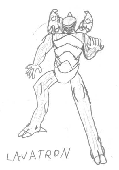 - Lavatron - Inspired by the Animorphs Visser 3 toy. I like how I got the insane look on his face, which fits the character well (23k, 6-26-00)