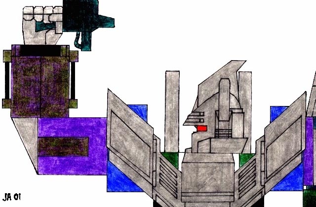 - Bruticus - done by eye from the Vuldigus toy, colored as Bruticus. Pencil, felt pen, and colored pencil on paper (69k, 8-9-01)