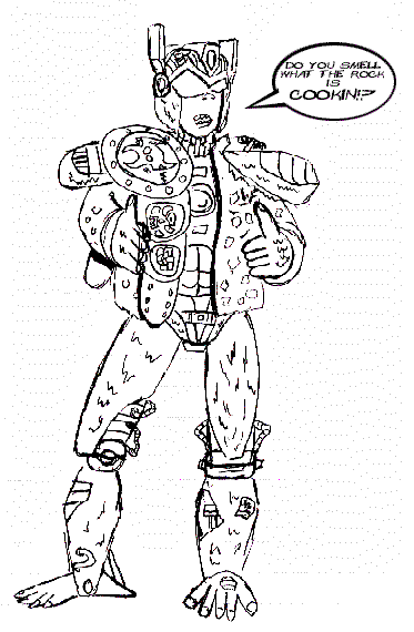 - BW Dinobot - This is my stylized version on BW Dinobot. Its influenced by the show and the toy version. It started off as a sketch in a notebook and turned into this. (56k, 12-1-00)