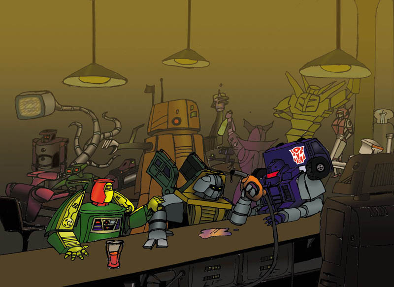 - "Bar Room" - It's Brawn, Cosmos and Pipes havin a cool one at a local bar. I'm trying to put together a fan comic in my spare time, and this will be part of it. Let me know what you think. (81k, 8-28-00)