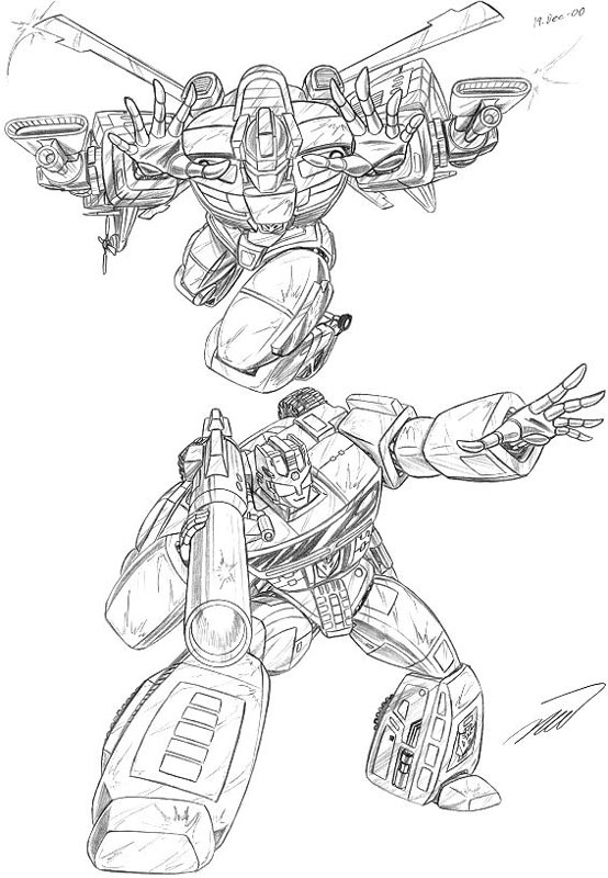 - Advanced Technobots: Inspired by the beefed up look of the G2 comic, I dreamed up this new Technobot team. B/W inked.