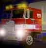 - "Late shift" - Optimus Prime in veichle mode at night. did this one as an excuse to fool around with the fx on corel photoshop. (27k, 9-26-00)