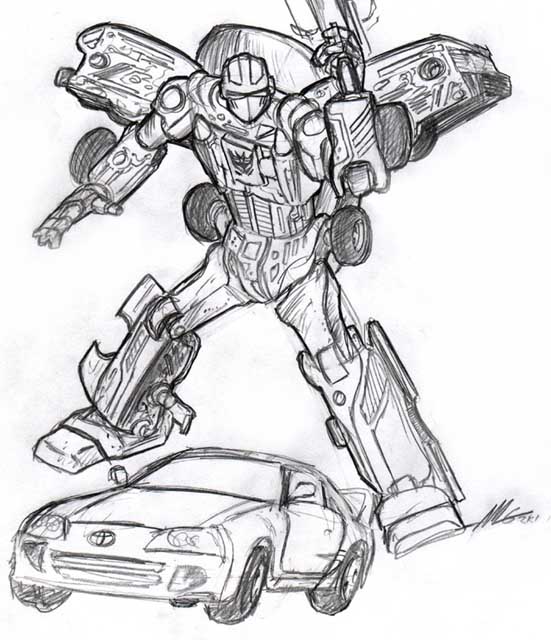 These next 3 illustrations are pencil roughs I created of my own TF characters. They are Decepticons. Their sub-group is the Roadwarriors.