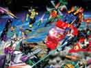 Box Back Battle ScenesThese are scans of the cool battle scenes that appeared on the back of toy boxes through most of the original TF series. Although the US toys stopped including these scenes with the start of Generation 2, Japan continued the tradition. I wish I had more than the one from Japan, though. Also, these are not ALL the scenes ever produced, just a few of them. Most are presented at 1024x764 pixels when possible, making for neat desktop "wallpaper" images.