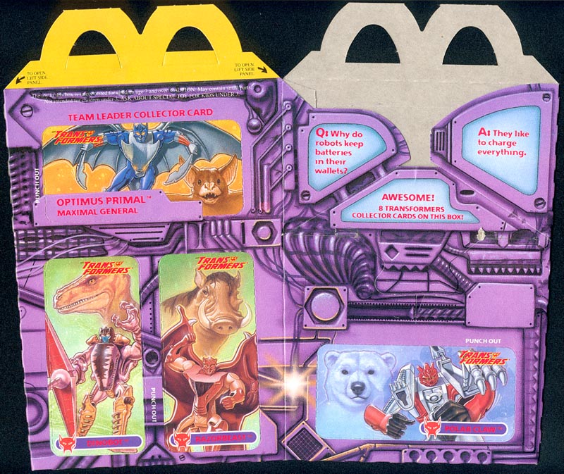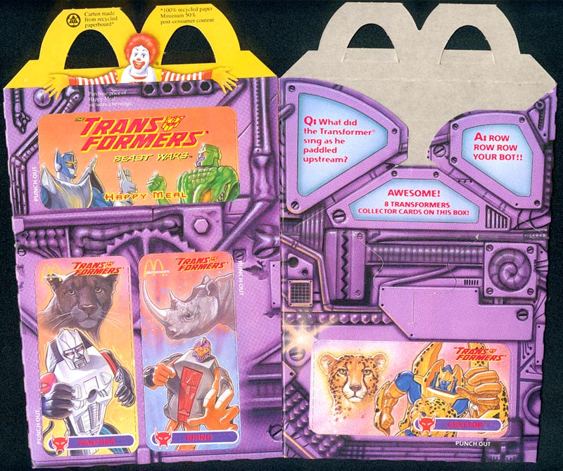 Beast Wars Happy MealThis is one of two different Happy Meal boxes for this promotion. This is the original Beast Wars McDonald's promotion which occured in 1995. I don't have the other box, apprently. :\