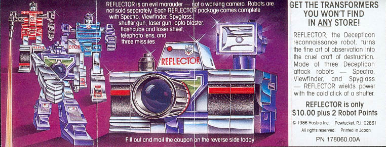 ReflectorThis one is pretty much ONLY trying to sell the Reflector toy. With a description and an order form, this is one of the smallest flyers. Approximate dimensions are 2" by 5" |