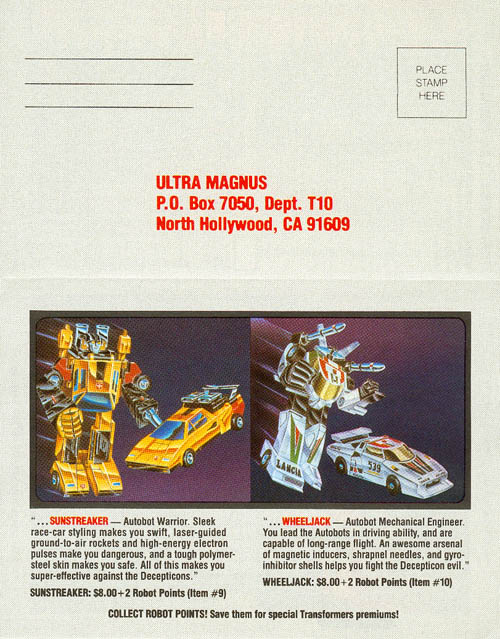 S.T.A.R.S. #2This one sells the STARS club, as well as the Omnibots, Sunstreaker, Wheeljack, Reflector, Thundercracker, Ratchet, and Mirage, as well as a couple TF video tapes. Approximate dimensions are 5-1/2" by 15" when fully opened. |