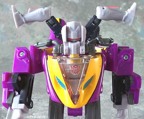 | Added by: james aka legend on January 05, 2003 Rated it: Comments: Wgat a gimmick l;oaded trasformer although i must say i would prefer it if he were just a decpticon instead of these stupid mini-con-head-thingys that dont even transform into a vechile...otherwise all good except he has no knee articulation :( |