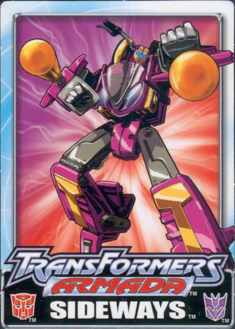 | Added by: Waylan on October 26, 2003 Rated it: Comments: I'm just here to corrent my last comment.Sideways kick ass in the animated series.I dun like sideway's read head(without Rook or Crosswise).Sideways would be a great toy if the heads of sideways color is like the ones on T.V |