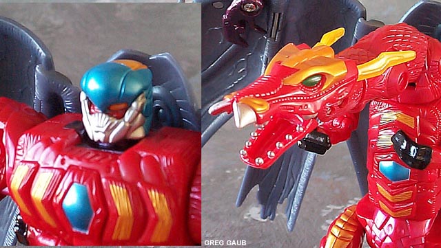 - Mushu! (from Disney's "Mulan" animated feature ;-) No really, that's what he looks like, except with wings. Anyway... it's a dragon. His head and neck are a little difficult to pose because of his gimmick, and his wings don't stay open, or wherever they are put. Anyway... I'm not real fond of this mode either.