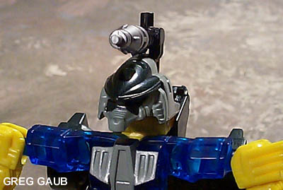 - His exhaust pipes are missiles that shoot with the ball and socket technology of the G2 Cyberjets. His reflected-light "glowing eyes" gimmick doesn't work too good, but it's there. You can also pop the gun off his head and place it in his hand.