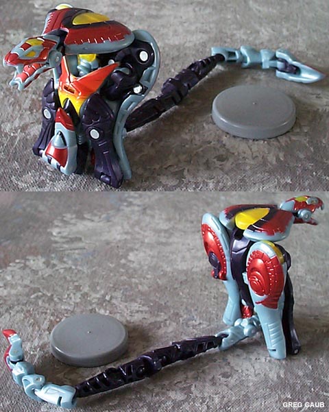 - A cobra with an oversized head. Really, though, without a whole different transformation strategy, snake TFs will always be disproportionate. Compared to his big snake/cobra head, his tail/body is tiny and frail. Definitely better in robot mode.
