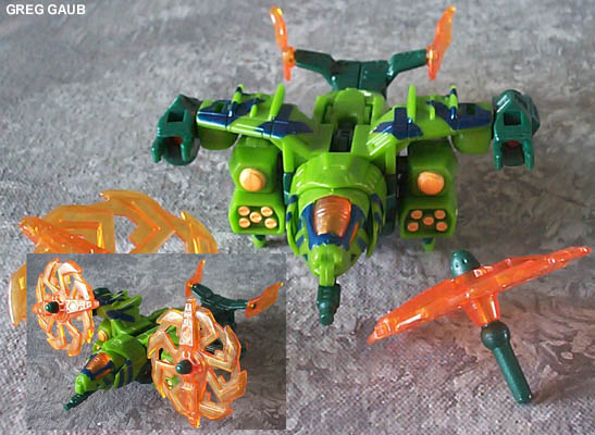 - His propellers spin freely, and "eject" or "launch" by pressing the button behind them, using a "pinch" firing mechanics similar to Mirage's exhaust pipe missiles. His geared transformation could also be considered a gimmick.
