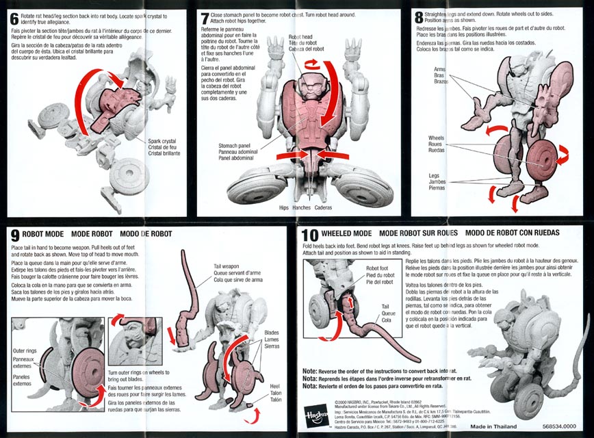 - I think it's a sufficiently complex transformation for a mega sized toy. His legs come out from inside the rat abdomen, and his rat head and front legs tuck into that cavity. The rest is flipping and folding. ;-) I think it's a very well designed transformation, aside from the robot head problem mentioned above.