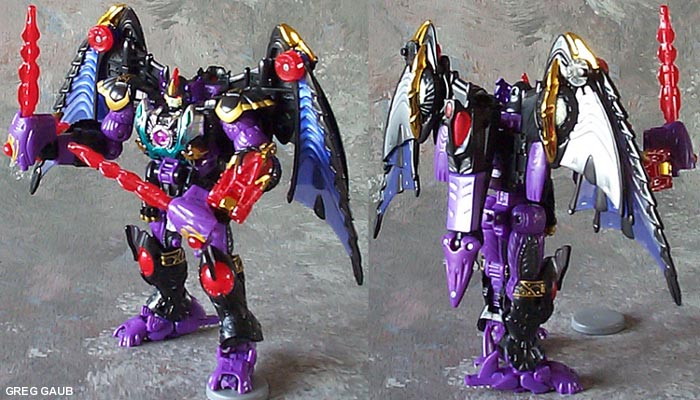 | Added by: Andrew on November 17, 2001 Rated it: Comments: It's not Megatron, but still a worthwhile toy. Best of the Predacon/Decepticon group in RiD, and looks far nicer than the Galvatron (aka Devil Gigatron) recolour. It's great fun playing with all the transformations. Also, the robot mode looks fantastic and is fairly posable, far nicer than the TM2 Megatron dragon. The negative points are the cheap and nasty chrome and the fact that it suffers from Sixshot syndrome, i.e. none of the transformation modes look realistic in the slightest. |