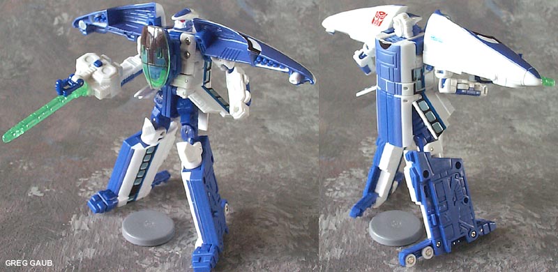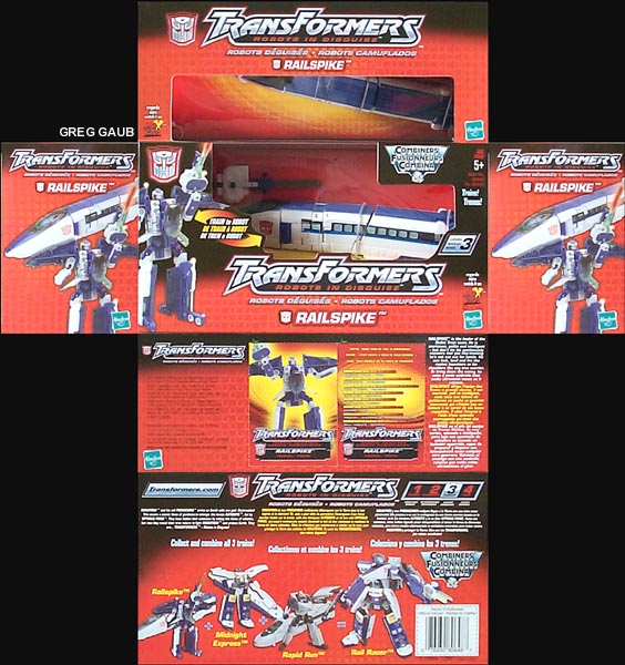 | Added by: darren mcdonald on July 11, 2002 Rated it: Comments: i just bought this transformer today. i like his train mode and the robot mode isn't too bad either. i took me awhile to understand how to get him into robot mode though.sometimes the legs will come off if played with too hard but will easily snap back on. all in all,a good addition to my collection.i must get others to form Railracer sometime. |