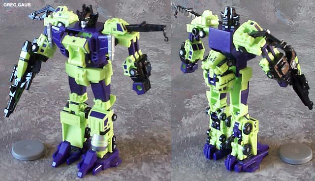 | Added by: Kenneth David Hall on April 20, 2006 Rated it: Comments: I got this a while back at a KB in Macon, Ga I finally found them all together in person instead of online with a lot of shipping, and did not want to buy it separate. When I got this home I was very happy with it the paint applications strike that old school Constructicon chord inside and the lack of playability is not that much of problem considering I have recently got to the point that I am tired of the over complicated newer toys. I miss G1 and they have done it good here. |